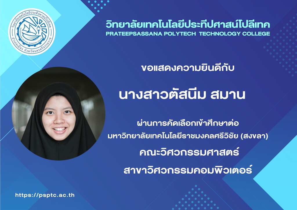 - ตัสนีม สมาน มหาวิทยาลัยเทคโนโลยีราชมงคลศรีวิชัย คณะวิศวกรรมคอมพิวเตอร์