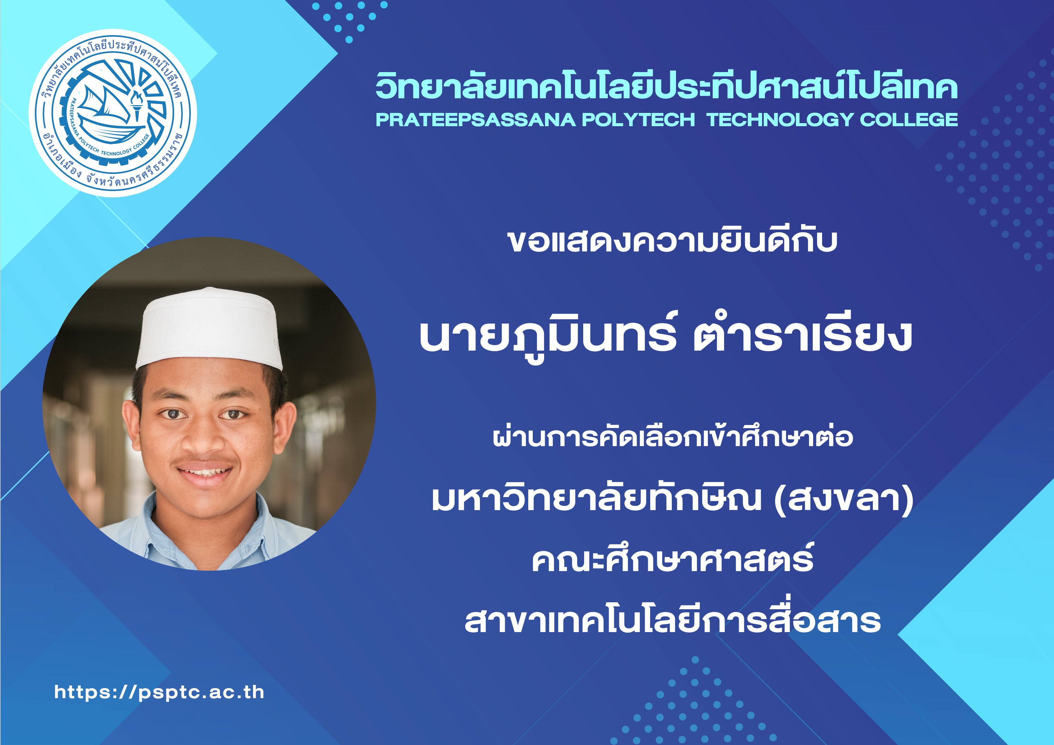- นาอีม เศรษฐพัชรปรีดี มหาวิทยาลัยเทคโนโลยีราชมงคลศรีวิชัย บริหารธุรกิจ ระบบสารสนเทศ