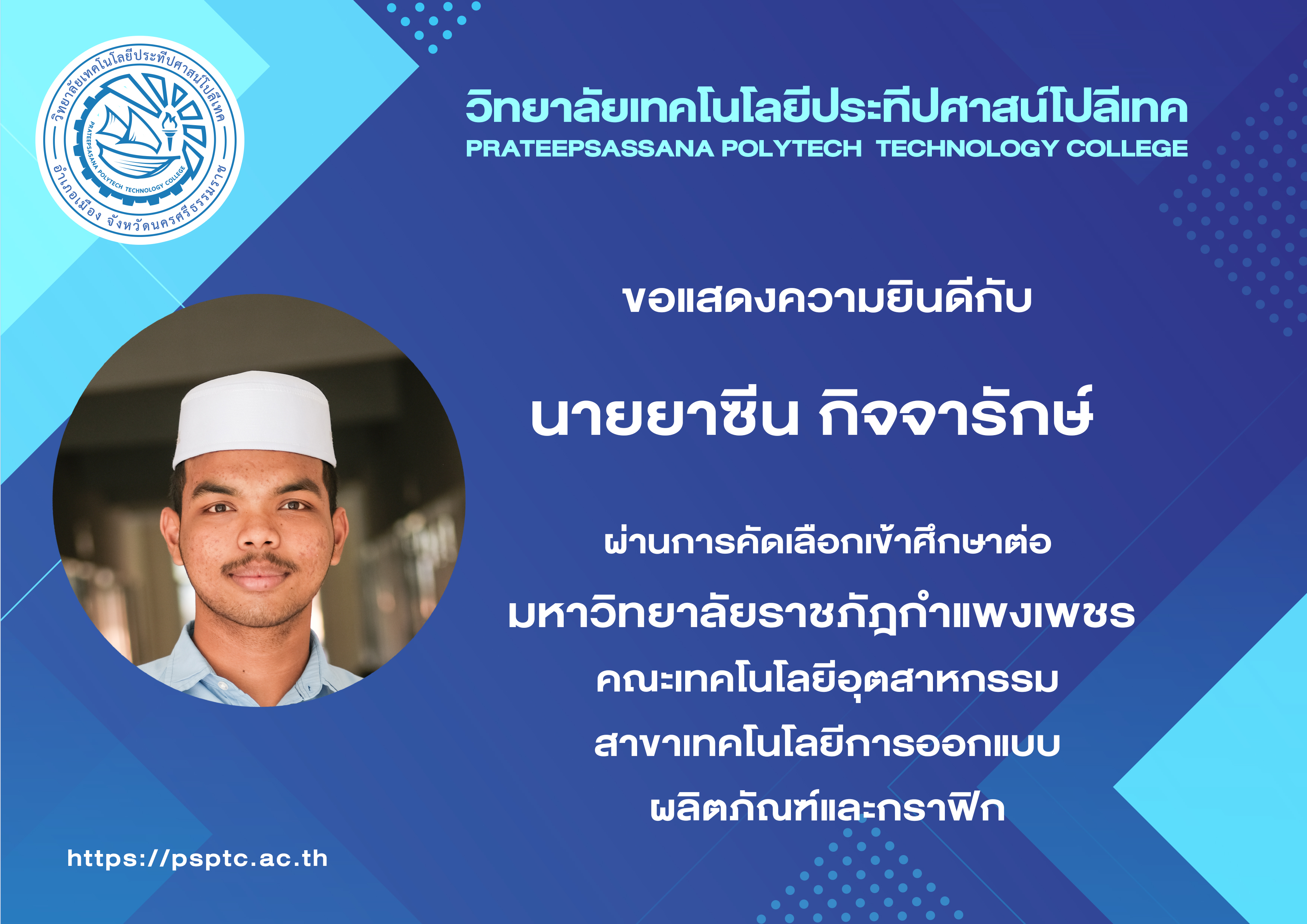 - ยาซีน กิจจารักษ์ มหาวิทยาลัยราชภัฎกำแพงเพชร คณะเทคโนโลยีอุตสาหกรรม การออกแบบผลิตพันธ์