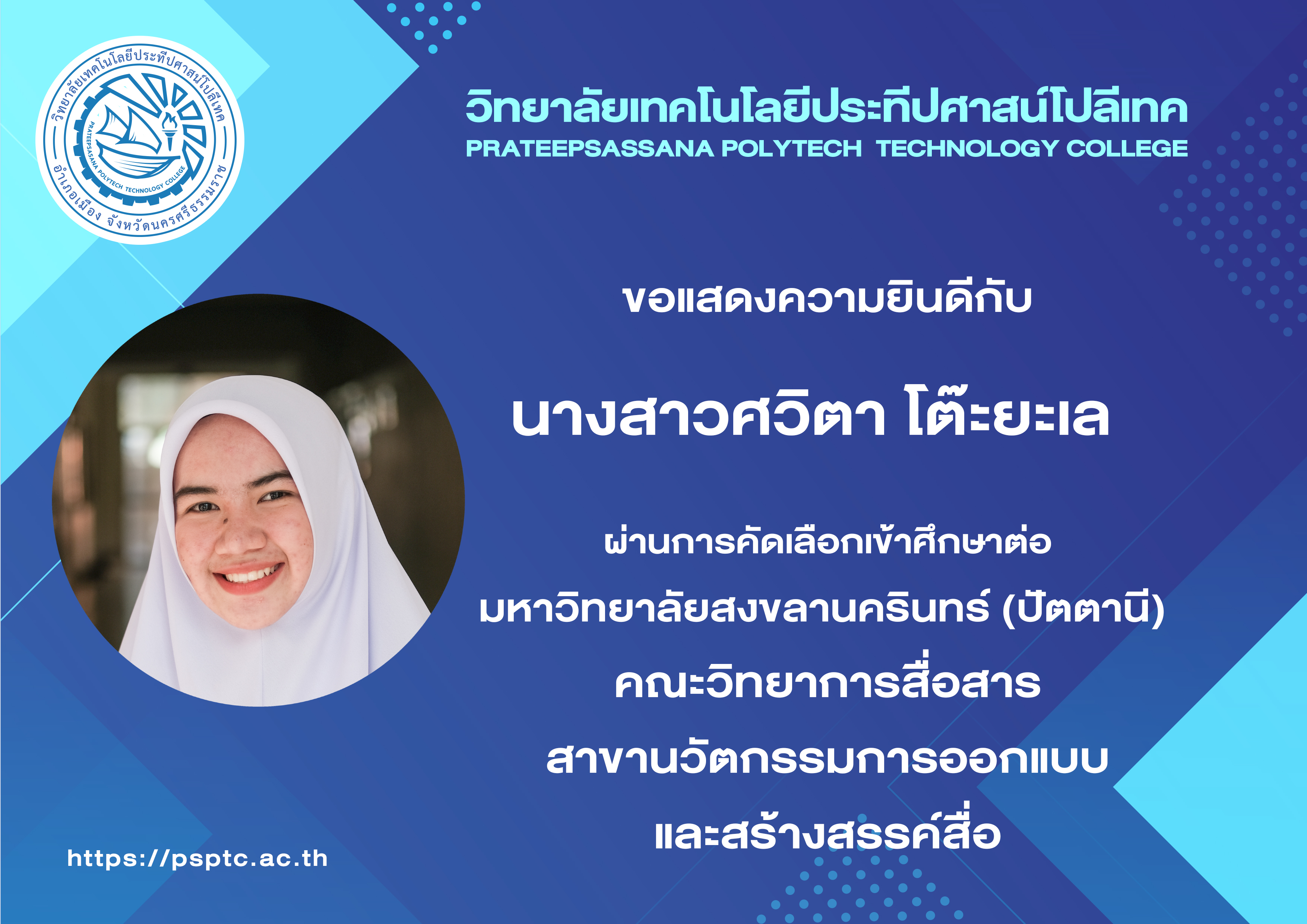 - ศวิตา โต๊ะยะเล มหาวิทยาลัยสงขลานครินทร์ (ปัตตานี) คณะวิทยาการสื่อสาร นวัตกรรมออกแบบ
