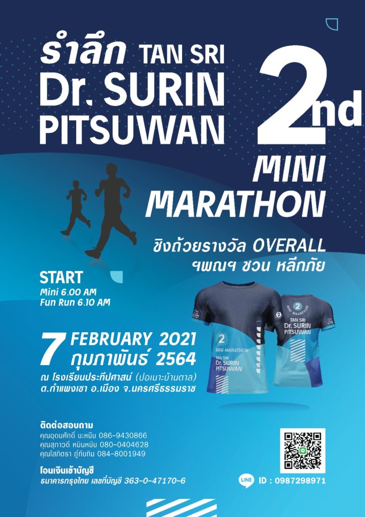 รำลึก ตันสรี ดร.สุรินทร์ พิศสุวรรณ มินิมาราธอน ครั้งที่ 2 ชิงถ้วยรางวัล OVERALL ฯพณฯ ชวน หลีกภัย