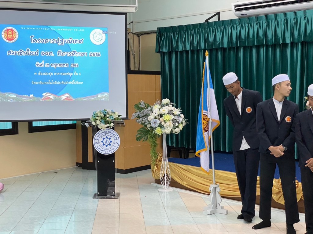 วันศุกร์ที่ 12 พฤษภาคม 2566 วิทยาลัยเทคโนโลยีประทีปศาสน์โปลีเทค จัดโครงการปฐมนิเทศสมาชิกใหม่องค์การนักวิชาชีพในอนาคตแห่งประเทศไทย ประจำปีการศึกษา 2566 โดยมีประธานคณะกรรมการบริหารองค์การนักวิชาชีพในอนาคตแห่งประเทศไทย วิทยาลัยเทคโนโลยีประทีปศาสน์โปลีเทค นายเสวกพิศสุวรรณ์ ครูที่ปรึกษา อวท. นายวุฒิชัย คตเชลรัตน์ และครูที่ปรึกษาชมรมวิชาชีพ ให้ความรู้และชี้แจงแนวทางการดำเนินงาน อวท. ประจำปีการศึกษา 2566