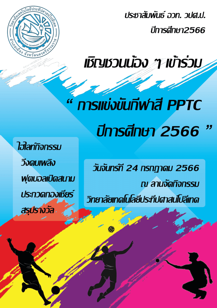 ข่าวสารประชาสัมพันธ์ กิจกรรมการฬาสีสานสัมพันธ์ PPTC ปีการศึกษา 2566 แบ่งปันสิ่งนี้: แชร์บน Facebook(เปิดในหน้าต่างใหม่) เฟซบุ๊ค ที่เกี่ยวข้อง